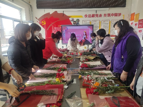 祝家街道祝家村开展“巾帼欢聚 花香邻里”三八节活动。活动现场春意盎然,花香四溢,花艺师小飞向大家讲解选花、裁剪、颜色搭配等花艺知识,大家精心构思将普通的花卉变成一件件精美的花艺作品。