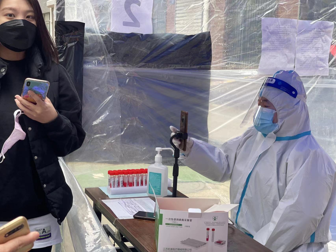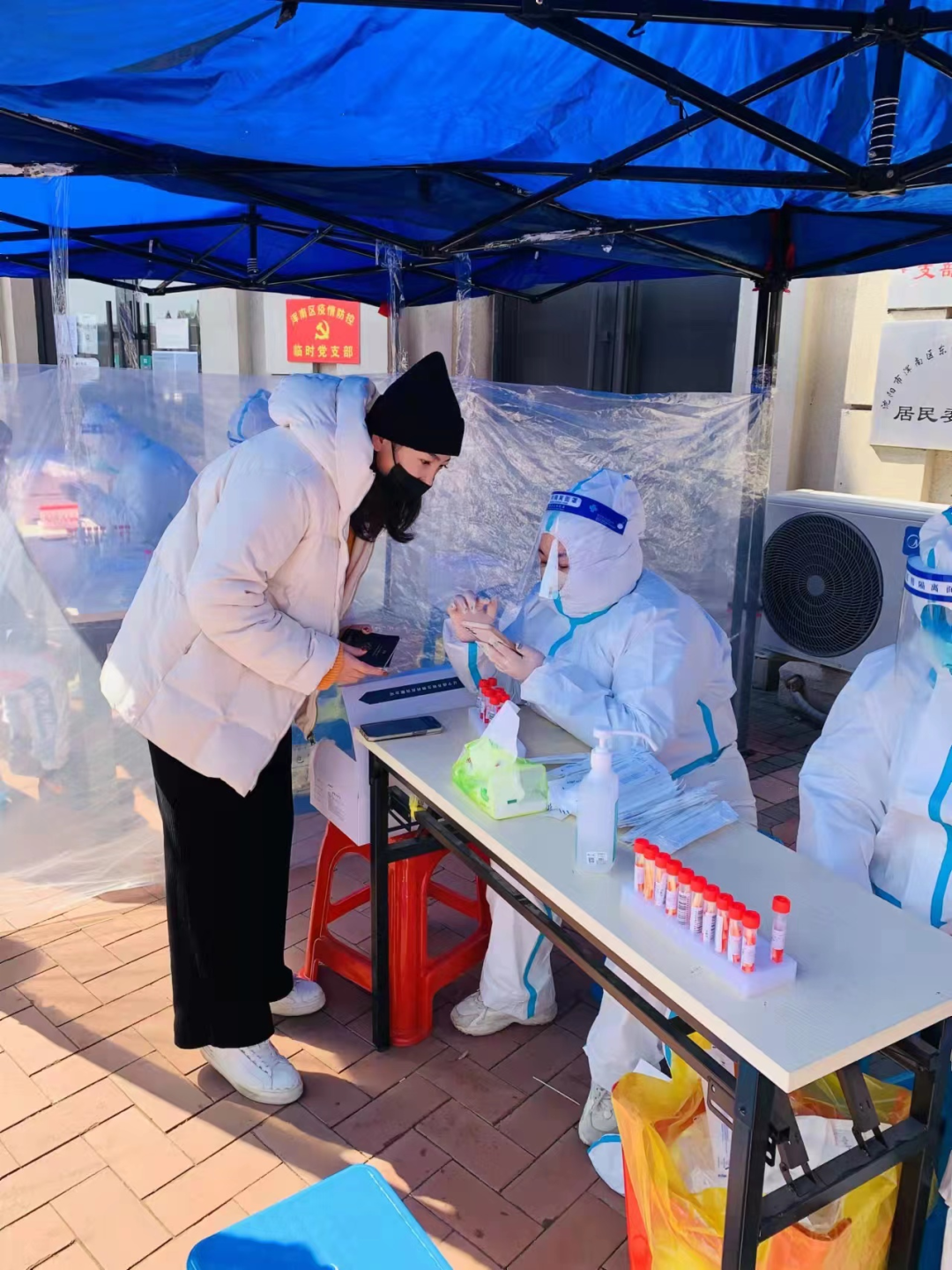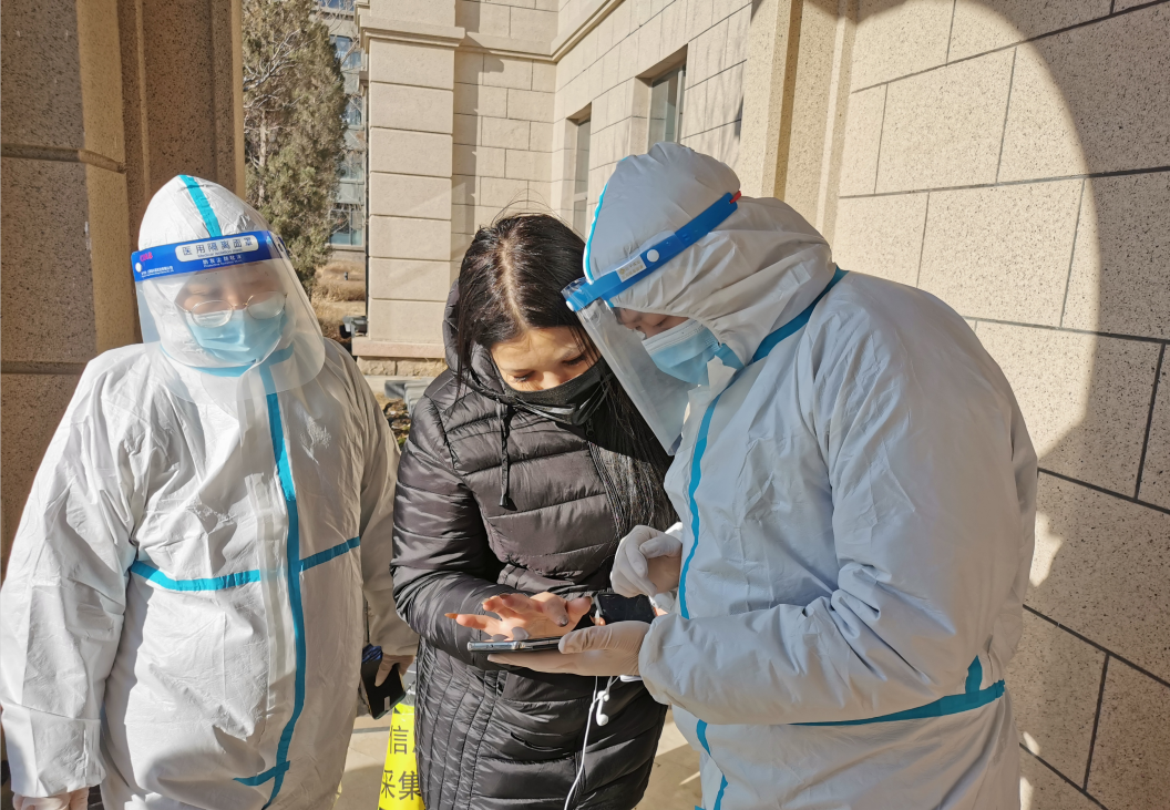 和你“守阵地”。核酸检测的主阵地就是“扣嗓子眼儿”和扫“辽事通码”,而担任扫码工作的多数是社工,他们操作系统熟练,又长期与居民打交道而更有耐心。就是他们陪在医生身边,一起穿防护服,一起“作战”,一起休息,共同坚守着“阵地”。温馨港湾社区孙倩从检测开始就与医生“共同进退”。她每次检测都要扫码2000个左右,腰酸腿疼自不必说,怕上厕所还得忍着口渴,每天都向医生“看齐”,“医生比我还累,她不停,我也能坚持”。金地艺境社区李枫为了不影响工作,把孩子交给了父母,她轻装上阵,连日来紧盯着身边的医生。怕穿防护服慢就提前到点位开始“打扮”,担心扫码跟不上医生的节奏就紧着招呼,几天下来,见着同事就炫耀:“我终于瘦点儿了。”