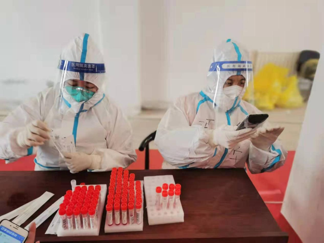 3月24日早上5点半,天刚蒙蒙亮,高坎社区卫生服务中心的院内就已经停满了各地来接医护人员进行核酸检测的车辆。“到奥林匹克花园小区的医生请跟我来”、“河西社区的大夫跟我走”、“晓仁境、晓仁境的大夫来我这”......随着一声声“认领”,今天的忙碌又开始了,张健与妻子康卫华互相加油鼓气后,便各自驾车载着医生前往指定点位准备开启新一轮的全民核酸检测工作。像这样的情形,近半月以来,几乎每隔一天就要上演一次。
