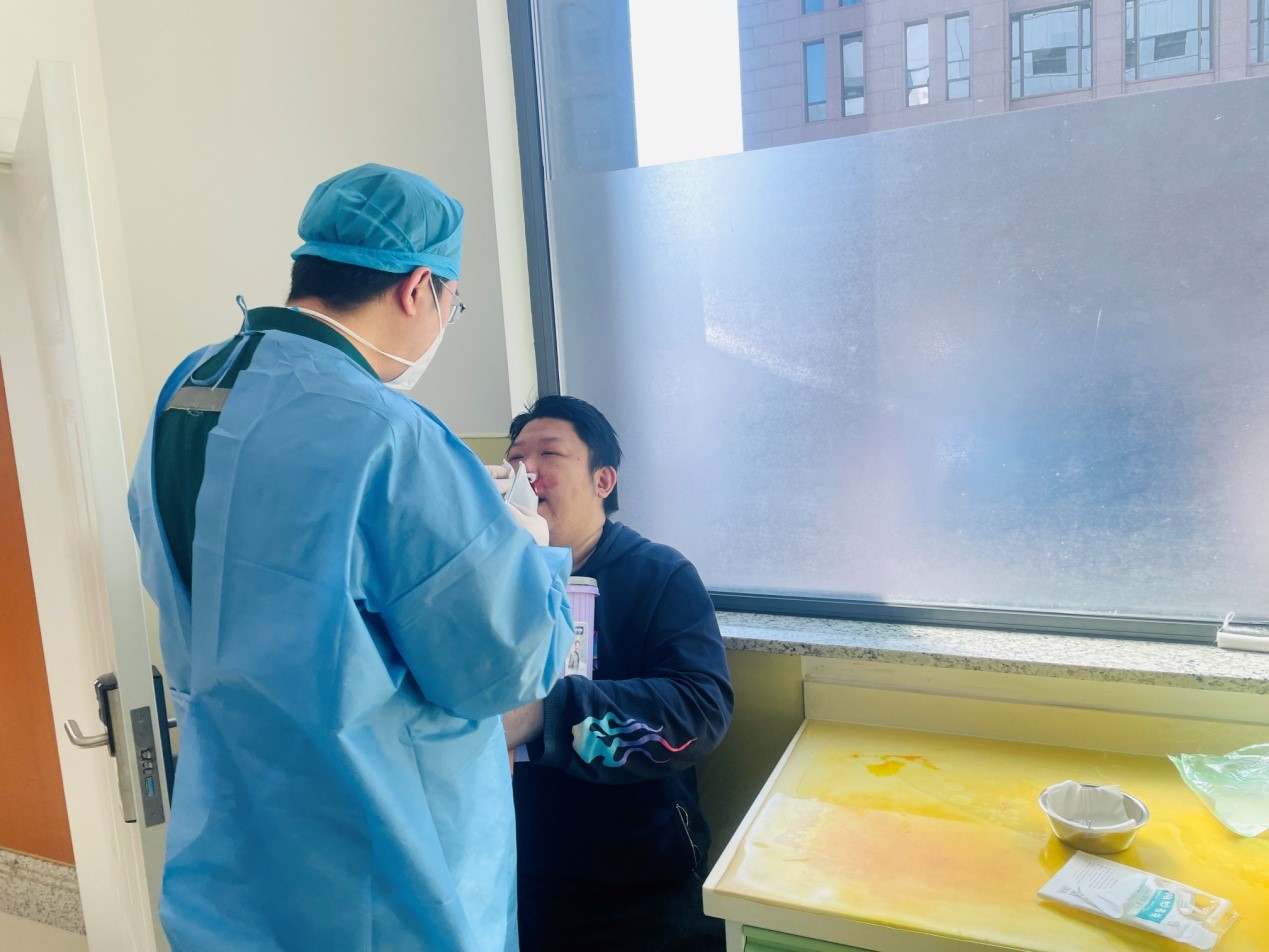 3月31日的早8点,张莅桐和陈晶正准备去小区扫楼,排查前一天未参加核酸检测的居民,突然发现小区西门一名居民低着头,地上还有一滩血,张莅桐立即过去帮忙处理。但居民鼻子一直流血不止,120急救车也没到,于是张莅桐当机立断,扶起这位居民上自己的车,驾车去就近的东北国际医院。不到5分钟,居民就被送到了急救室,医生为他做了急救处理,居民的血压一直在200左右,多亏送医及时,否则就会有生命危险。张莅桐忙前忙后陪着居民做各项检查,还为他垫付医疗费近4000元。