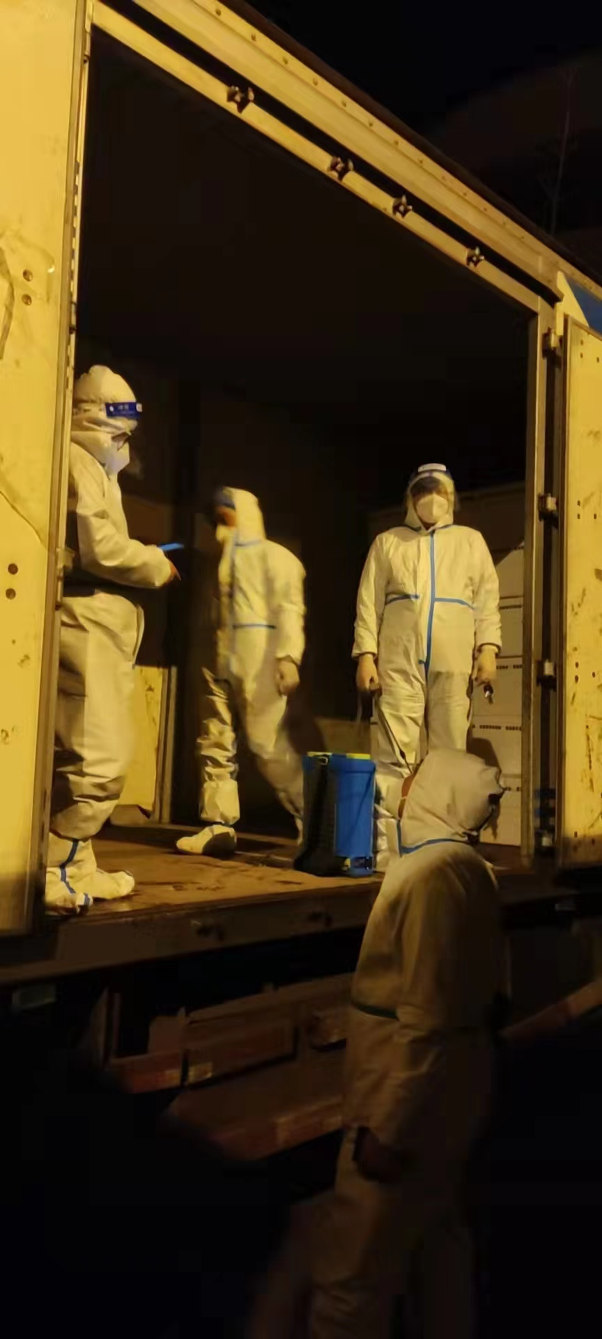 凌晨1点,公服科换上防疫服,帮助搬运清点“暖心蔬菜包”