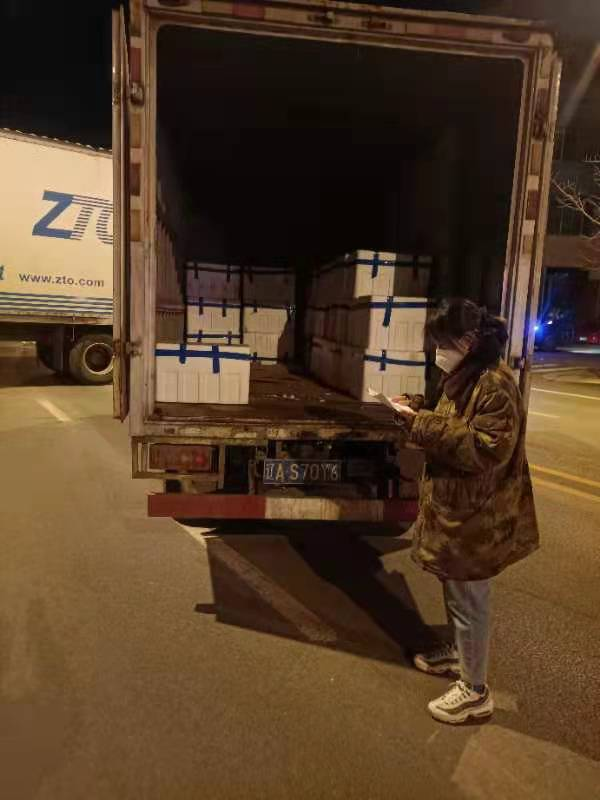 公服科于4月5日晚11点到达,领取“暖心蔬菜包”