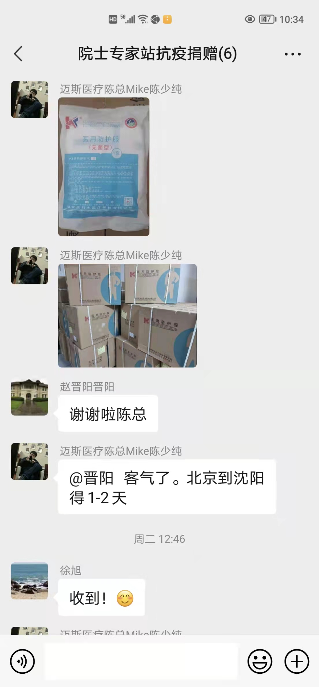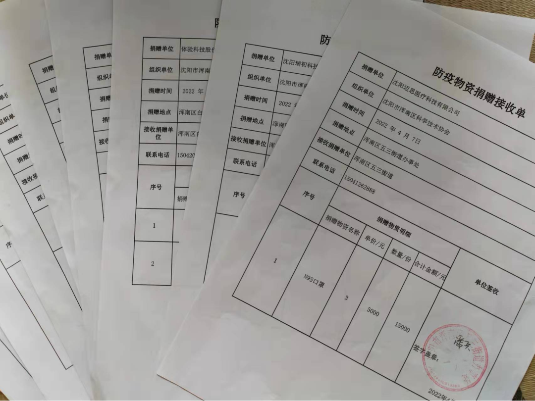 得知五三街道防护服有缺口、白塔街道和浑河站东街道急缺N95口罩后,沈阳迈思医疗有限公司总经理陈少纯,第一时间主动联系区科协,并与瑞初科技有限公司“疫”起携手,联系购买,捐赠事宜,解决一线防疫的燃眉之急。4月7日两家企业在科协的组织下一起为街道捐赠了N95口罩1000个、防护服100套等价值3万余元的防疫物资。据了解迈思医疗一直关注疫情防控工作,并多次为吉林省和我区捐赠防疫物资。陈少纯表示,当前疫情防控形势下,迈思医疗公司有责任有义务为抗疫贡献绵薄力量,体现民企担当。未来公司将用智慧创造更大的社会价值,以实际行动履行企业使命,赋予浑南更多温暖,更多力量。