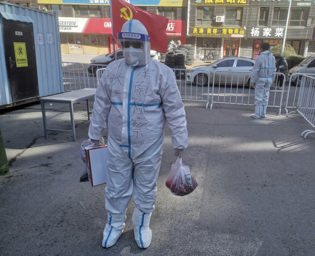 工作中,他一边要做好园区防疫和保障的工作,一边作为老大哥还不忘关心防疫小分队队员的日常生活,他总是最早起床、最晚睡觉。“有任何问题都可以找我,我来联系解决。”这是他常说的一句话。他,不忘初心、尽己所能、默默无闻地为年轻人树立着榜样,散发着火热与光亮,用坚守与奉献温暖着每一个抗“疫”人员的心。