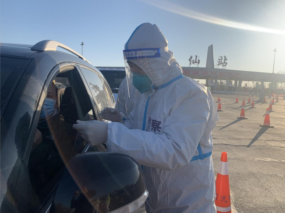 营商办副主任滕云飞,自3月23日参加桃仙卡口执勤以来,工作中认真负责,兢兢业业,主动为群众排忧解难,有效维护查验点平稳秩序。3月30日夜间,正在桃仙机场等候登机的李女士,打电话对公安机关及时帮助送还她遗落在核酸检测窗口的身份证这一善举表示感谢。4月4日下午,查验点一对吉林夫妇向公安民警鞠躬致谢,感谢我们民警联系机场分局并安排专人驾车陪同,前往机场进一步做核酸检测。夫妻二人从吉林双辽来沈乘飞机回山东老家春耕,对政府吉林全域劝返政策表示不满情绪激动,公安民警协调安排做核酸,虽最后未放行,但夫妻二人为民警尽心尽力的援助,发至内心的感谢。4月8日夜间,一男子乘坐出租车途径桃仙站拒不出示行程码、健康码。接到报警后,公安民警立即联系属地交警高速二大队,将该车辆拦截,进行查验。当晚,又有两辆待检大货车因抢道发生刮蹭,双方司机言语激烈互不相让,一方司机欲动手殴打对方,公安民警发现后果断站在双方中间,制止双方殴打行为,及时恢复应急大货通道有序通行。