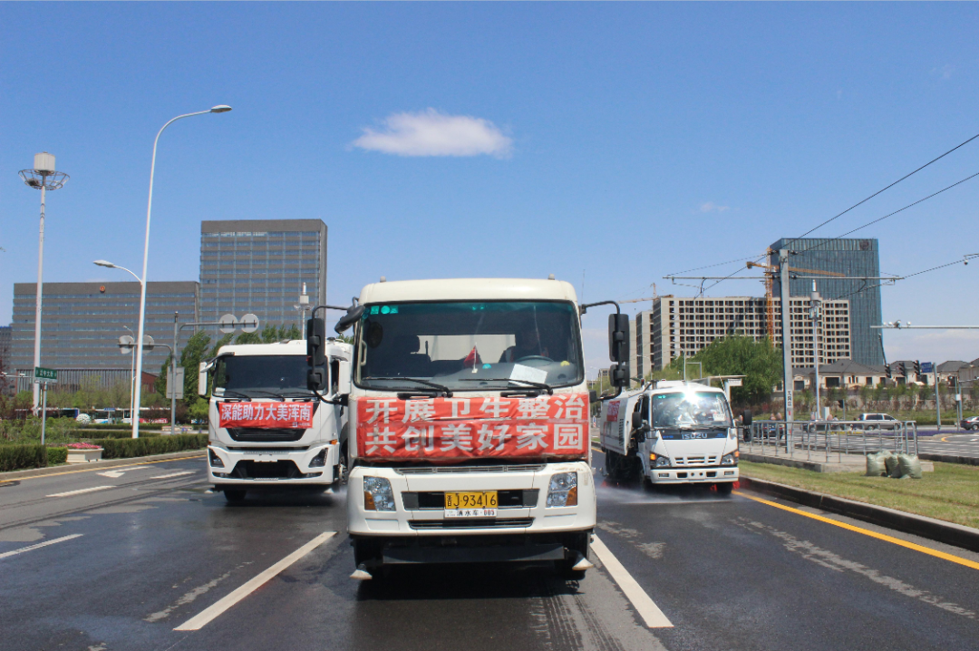 全面实施“一清、二洗、三刷、四冲、五擦”清洁行动。一清:清理整治残冰积雪、卫生死角;二洗:洗扫路面、人行道、广场积尘;三刷:刷洗护栏、绿化挡板;四冲:冲洗道路边石、人行道、广场污渍;五擦:擦洗果皮箱、路牌。重点区域延长作业时间至24时,车辆作业频次由4次增加到6次,人机结合、无缝连接,做到路上有车、街上有人,出车作业率达到100%。