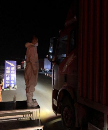 高速公路卡点防疫工作风险大、责任大,三人主动请缨,始终坚守在疫情“防输入”最前沿,本应是4人一班岗,但有一位同志突发疾病无法到岗,他们三人不喊苦不怕累,克服困难每班坚守岗位24小时,确保疫情防控卡口查验工作落实到位,他们对车辆司乘人员仔细检查,有序放行。为确保公路交通网络不能断、应急运输绿色通道不能断、必要的群众生产生活物资运输通道不能断,古城子南高速口已经形成了“客货分离”的常态化机制。