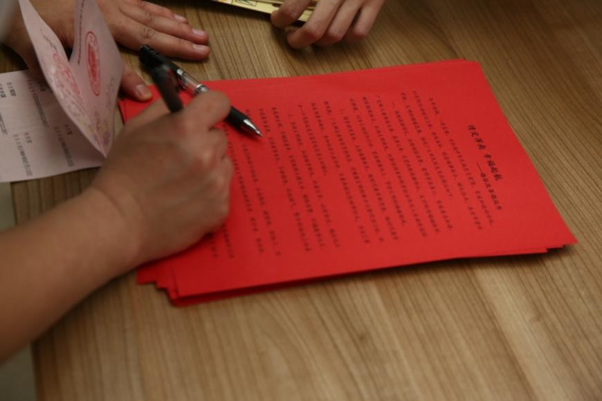 区民政局婚登处积极推进婚俗改革,倡导“重登记、强责任、崇节俭”的婚俗新风。在活动现场增设“推进婚俗改革 树立文明新风”大型宣传牌,引导前来登记的新人自愿填写《推进婚俗改革 树立文明新风》承诺书50份,呼吁前来办理结婚登记的新人们自觉抵制婚嫁恶俗,杜绝铺张浪费,文明节俭,从个人做起,从现在做起,做一名文明新风的践行者和传播者。
