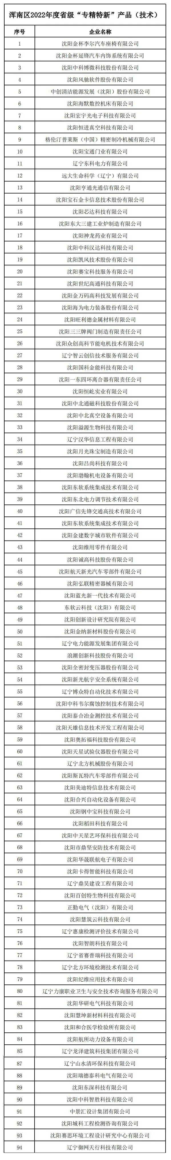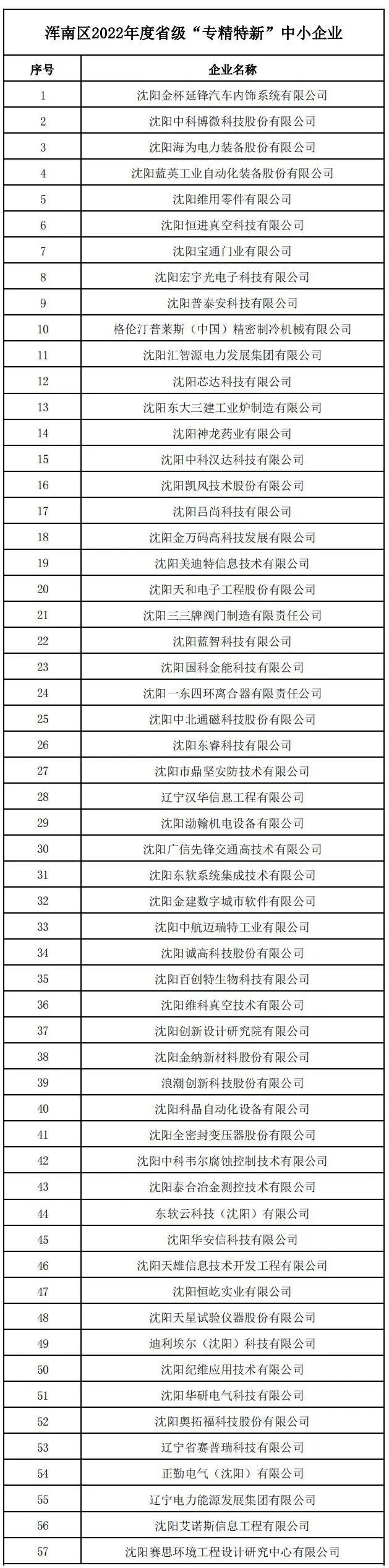 根据5月20日辽宁省工信厅网站公示,浑南区拟获认定2022年度辽宁省“专精特新”产品(技术)94项,占全市22%;专精特新中小企业57家,占全市22.9%;专精特新小巨人企业12家,占全市16%。