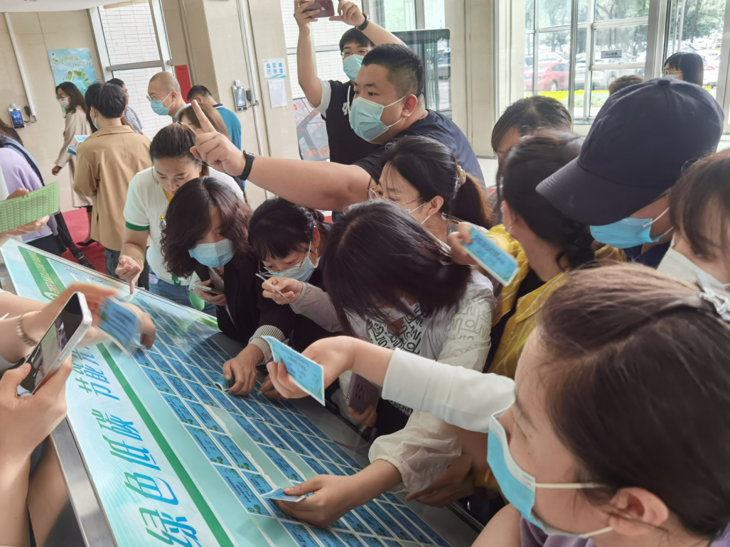 低碳日宣传活动当天,区综合事务中心在机关2号楼1楼大厅组织机关干部开展了“节能常识有奖竞答”活动,活动现场气氛热烈,干部职工们积极参与互动、抢答,营造出了浓厚节能宣传氛围。