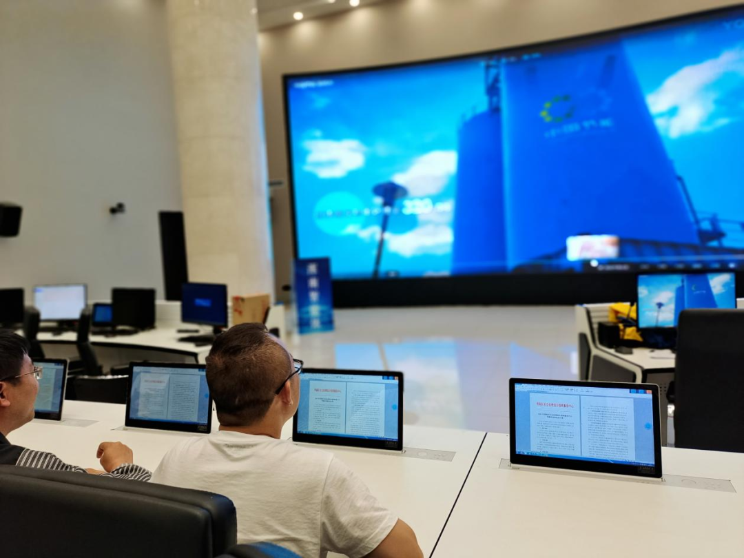 区治理中心召开节能减排动员会议,运用无纸化办公设备播放《2022年浑南区社会治理综合指挥服务中心节能宣传周活动方案》,以电子文档替代纸质材料,实现少用一张纸,少用一滴墨。