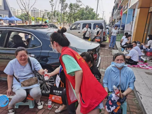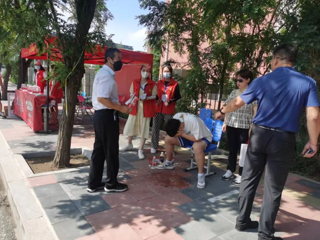实验中学考点的一位考生由于天气炎热中暑了,青年志愿者迅速反应,在青年志愿者的悉心照顾下,这位考生恢复了正常,并顺利进行了考试。