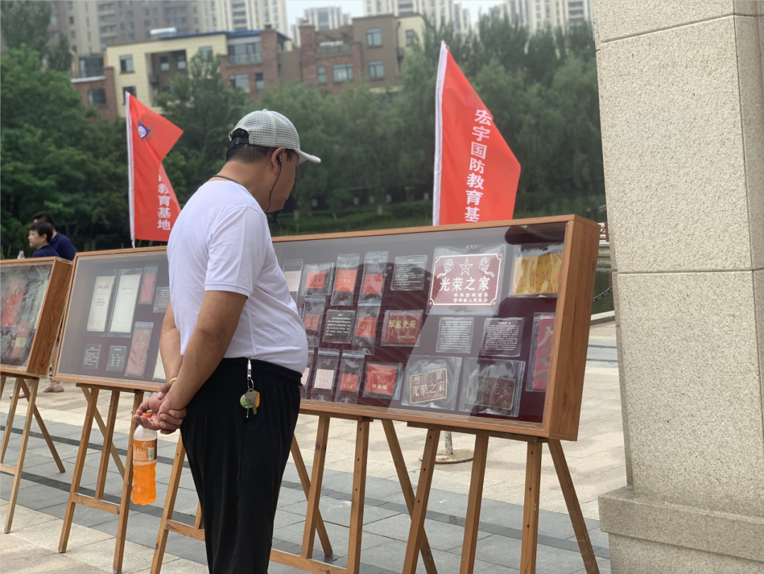 在金地长青湾水晶湖广场,红旗、活动展板、革命文物等展示品让活动现场变成了传递红色精神、弘扬正能量的学习“根据地”。活动中,辽宁省宏宇国防教育基地国防教育宣讲专家讲授“红星 红旗 红心”—党史军史系列课程。现场还展出一些珍贵的革命文物勋章、证章、中国人民解放军军衔、各时期党章党史资料等。通过回忆党的革命史、斗争史和建设史,让大家深切感受到老一辈无产阶级革命家为党和国家利益鞠躬尽瘁的崇高品格,深刻领悟到革命精神的内涵,激发大家的爱国主义情怀。社区党员、群众、小朋友们认真看着展柜里的物品,仔细倾听讲解员的宣讲。(撰稿人:王戈 审核人:李彤)