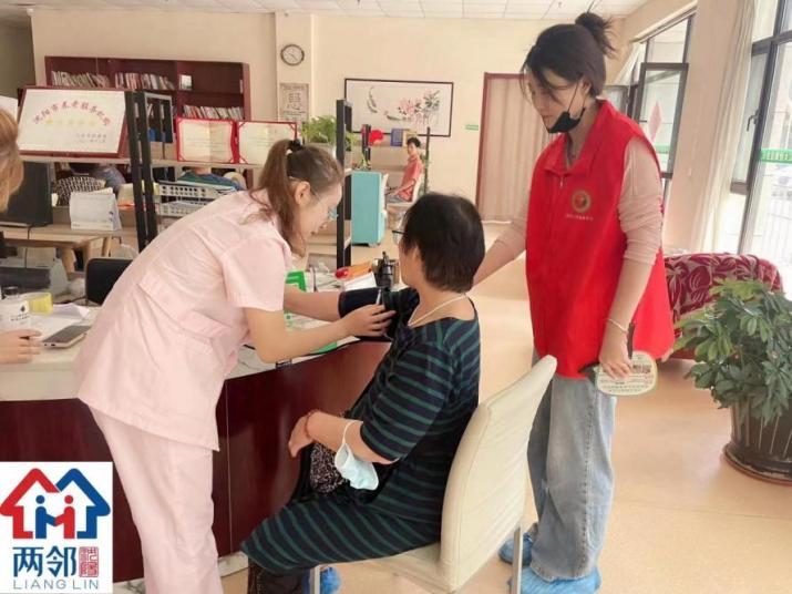 活动中,工作人员现场为老年人进行测温登记,并耐心引导老年人排号剪发,同时为老年人提供测量血压等服务。