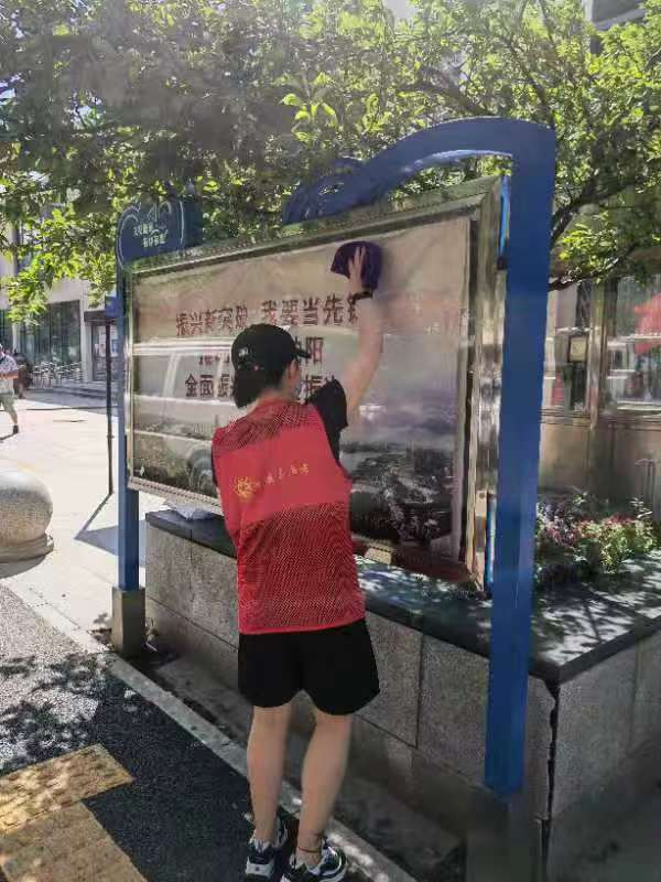 旁边冷饮店的老板急切的关心着“你们都这么大年龄了,这么热的天,别中暑了呀!”“没事,我们闲着也是闲着,把四周搞干净点,我们心里也舒服。”说着又拿起抹布开始擦拭公交车站。一句朴实无华的话,让大家有点感动,原本乘凉的居民也都纷纷加入了志愿服务队伍......