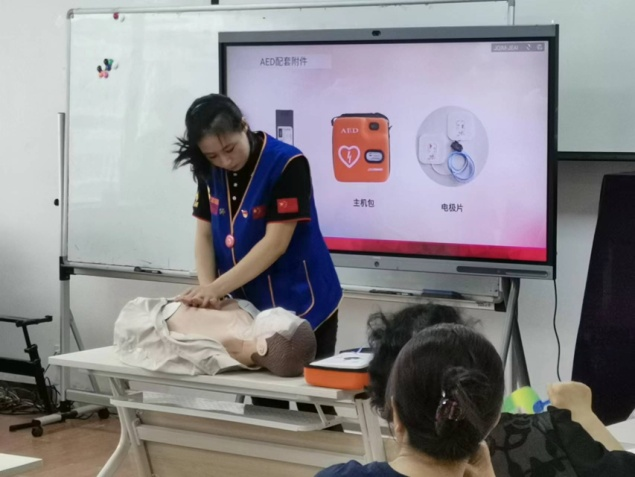 活动中,应急救护专业讲师通过示范操作、现场演练等形式,向社区居民详细讲解“心肺复苏、心跳骤停抢救、心脏按压技术、AED使用方法”等急救知识,现场演示胸外按压、人工呼吸等抢救措施的正确方法。居民们也积极参与,大胆尝试,使用“模拟人”认真反复练习。专业讲师对动作要领不准确的居民进行精心指导,对于居民们提出的问题也进行耐心的解答。