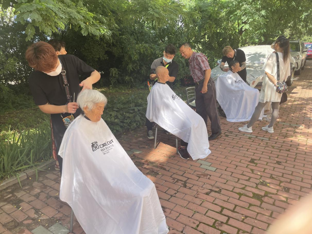 活动邀请三位理发师为小区60岁以上老年人免费理发,利用一上午的时间,为小区内十余名老人进行细致的剪发服务,受到居民的好评与称赞。