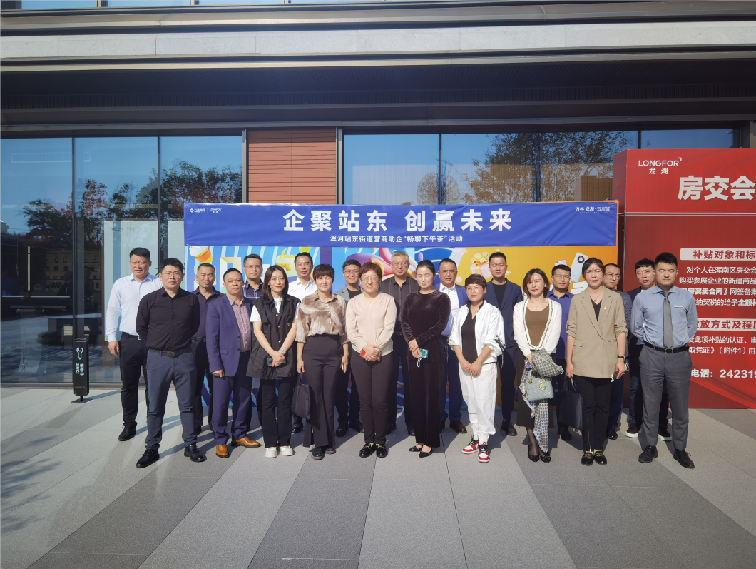 为进一步优化营商环境,搭建政企直接沟通的交流平台,推进域内重点企业资源共享、合作共赢,9月28日,浑河站东街道在龙湖.云河砚项目营销中心举行“企聚站东 创赢未来” 营商助企“畅聊下午茶”活动。区委常委、副区长傅涵出席活动并致辞,龙湖集团、金杯李尔、金杯延锋、航天三菱、达能电气、中科奥维、福融天地、沐里沐外、潮顺餐饮、运通宸宝4S店、奥尊4S店、鑫汇通4S店等12家域内重点企业相关负责人参加活动。