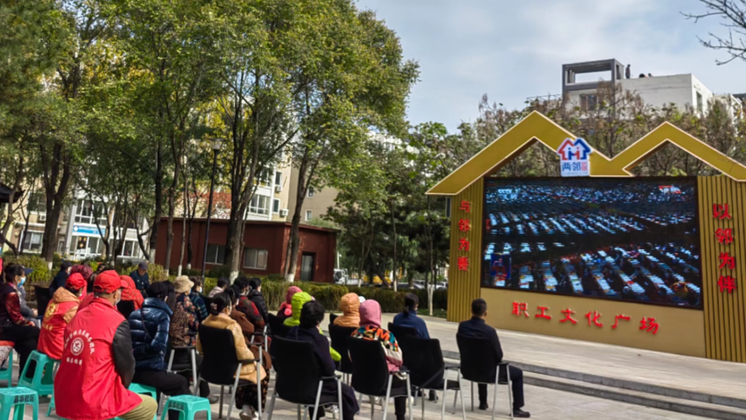 五三街道组织党员干部和社区群众集中收听收看党的二十大开幕直播
