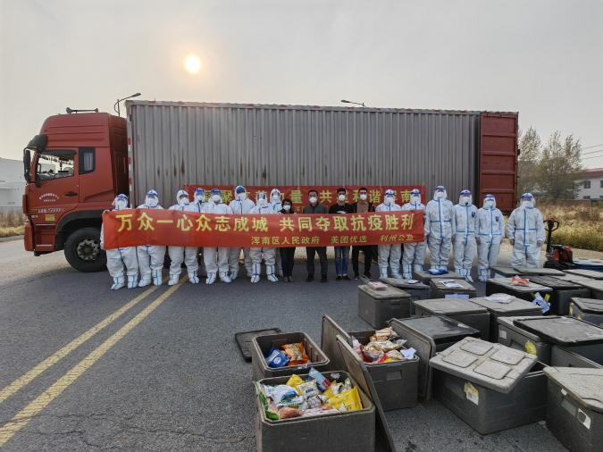 区民政局日前联合满堂街道办事处、沈阳市利州公益事业发展中心、美团优选共同发起“隔离不隔爱 温暖在浑南”慈善捐赠活动,将8吨、4500多件,总价值12万余元的肉、蛋、乳制品等爱心物资发放给因疫情封闭在家的群众。为他们提供生活保障,把政府和爱心企业的关心、温暖送到百姓身边。
