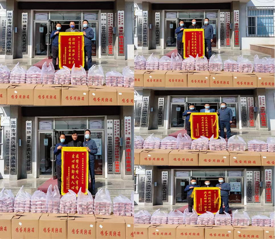 10月16日,浑南区人大常委会在满堂街道办事处举行人大代表支持抗击疫情捐赠仪式。市人大代表、辽宁圣宸建设集团有限公司董事长王军海,市人大代表、沈阳麟龙科技股份有限公司董事长朱荣晖,市人大代表、沈阳迈思医疗科技有限公司董事长陈少纯,区人大代表、沈阳顺羽航空货运代理有限公司董事长郭永全,区人大代表、沈阳昊诚开关设备有限公司董事长董强等为满堂街道3个封控小区捐赠总价值12.75万元的猪肉、鸡蛋等生活物资3400份,以实际行动践行企业家的奉献和担当,为疫情防控贡献企业力量。浑南区人大常委会副主任卫大同参加捐赠仪式。