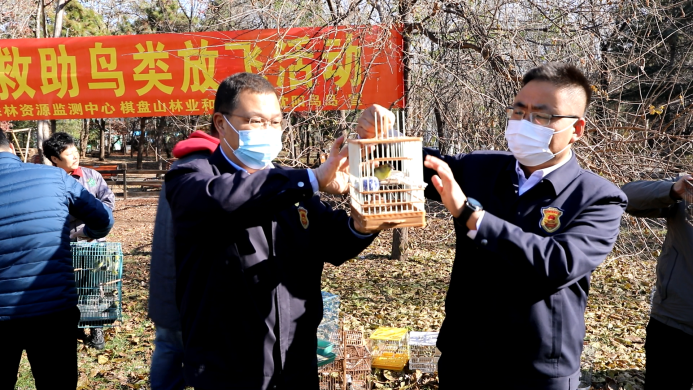 活动期间,在场嘉宾与棋盘山林业和草原局森林警卫队员共同放飞救助的鸟类,放飞的鸟类包括黄雀、棕头鸭雀、朱雀、煤山雀、大山雀、小山雀等30余种共计700余只。这些鸟类都是通过联合执法查获的野生鸟类,在放飞前,统一在救助中心进行救治,目前已达到了放飞条件。