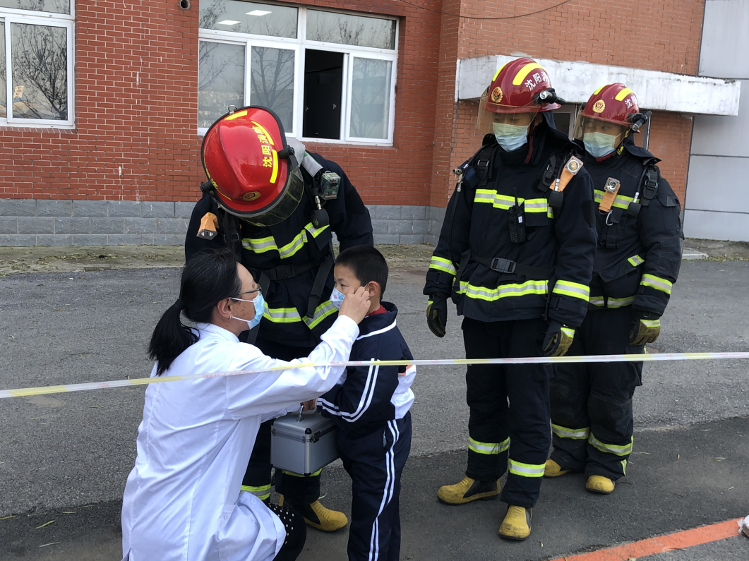随着警报声响起,学生在班主任的有序引导下,捂住口鼻,俯下身体,按逃生路线迅速有序的撤离到疏散指定地点,班主任及时清点报告人数,疏散过程用时1分40秒,各环节保持良好的秩序和快速反应能力。消防救援人员迅速到达火点进行现场扑救作业,并搜救被困学生一名,校医立即进行初步的诊断,后送至医院进行观察。