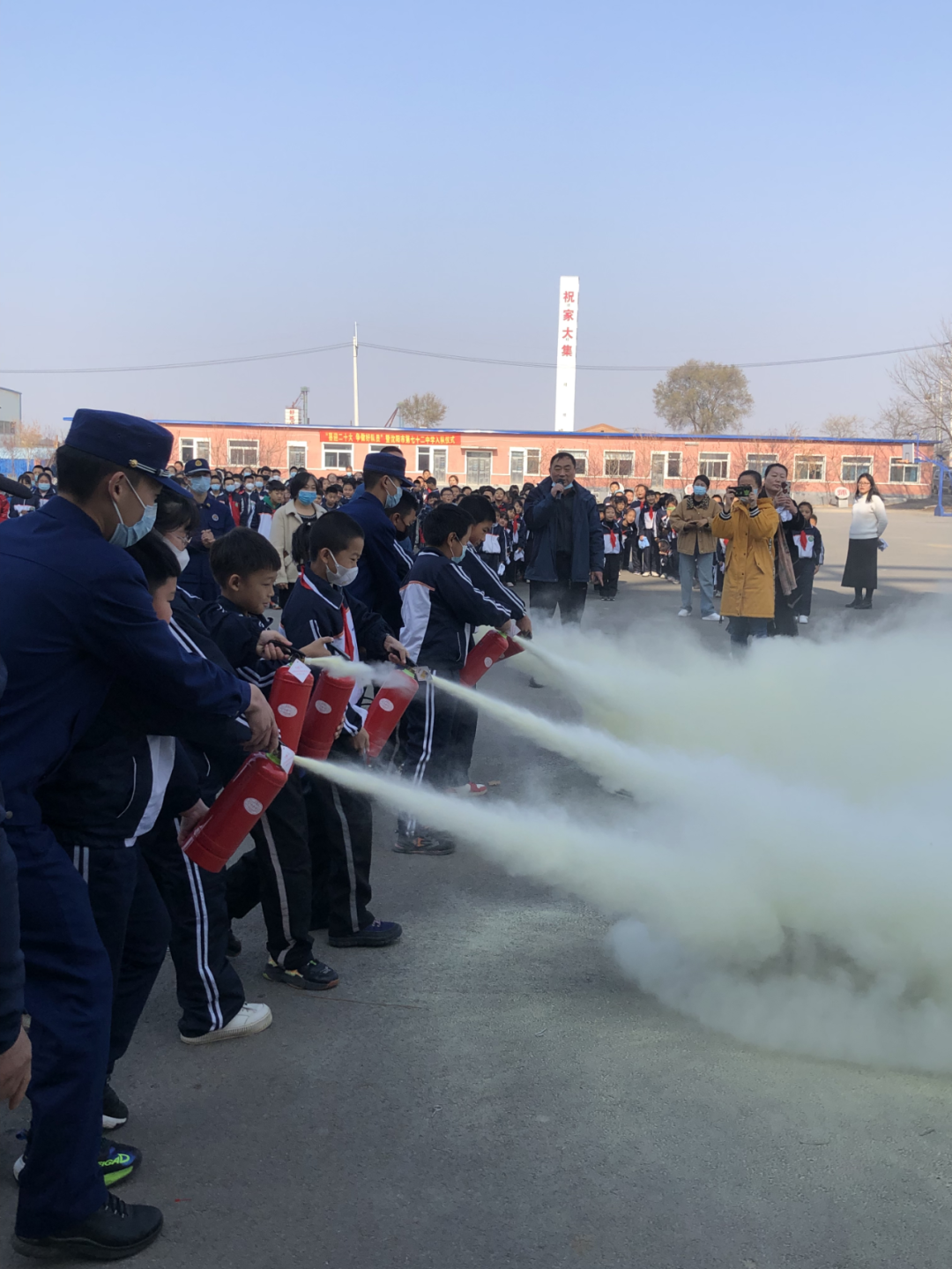 疏散演练结束后,消防救援人员还现场讲解各类灭火器具的使用方法,指导师生正确使用干粉灭火器,并模拟火灾现场进行扑灭训练,学校师生亲身体验灭火过程,进一步的提高实战能力,增强了消防安全意识。