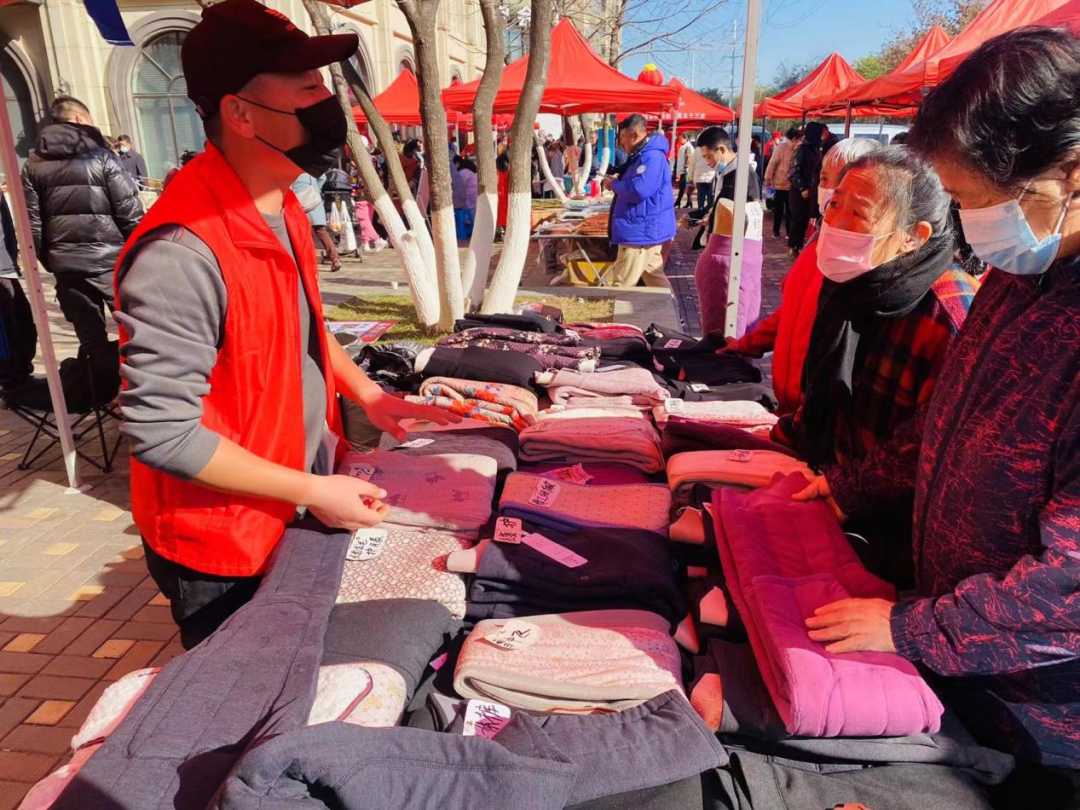 在“日用百货便民区”,五三街道以“我为百姓办实事”为宗旨,了解群众日常生活所需,为居民们送来新鲜的应季水果、当地特色的锦州干豆腐、正宗的朝鲜族泡菜等生活必需品,让百姓在家门口就能吃到可口的食物,买到实惠的衣服,享受到便民的服务,并且体会到传统大集的浓浓风情。居民们络绎不绝,热情高涨,提着满当当的袋子,满意而归。