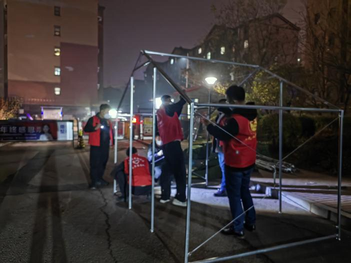 在发现一例核酸采样结果异常后,李相街道党工委第一时间启动防疫应急预案,迅速组建抗疫专班,抽调人手,成立抗疫应急第一小队,未雨绸缪,做好应对准备。在该病例确诊后,第一小队迅速集结前往封控区,做好封控管理,连夜分析研判疫情形势,进一步完善疫情防控方案,彻夜不休搭建帐篷,做好封控管理基础设施建设工作。同时协调上级各部门,落实封控小区隔离、转运、消杀、管控、服务、应急处置等各项工作,安排好环境消杀、核酸检测、民生服务等工作,用最快的速度阻止病毒扩散,筑牢防止疫情蔓延的红色大堤。