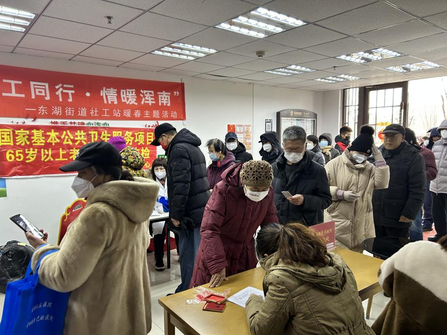 区内医疗机构也与社区积极配合,为解决老人用药需求,东湖街道文德社区日前联合东湖卫生院、浑南社工站,向有需求的老年人免费发放防疫中药包和新冠抗原试剂,并为老人们送上新春对联礼包,表达新春祝福。