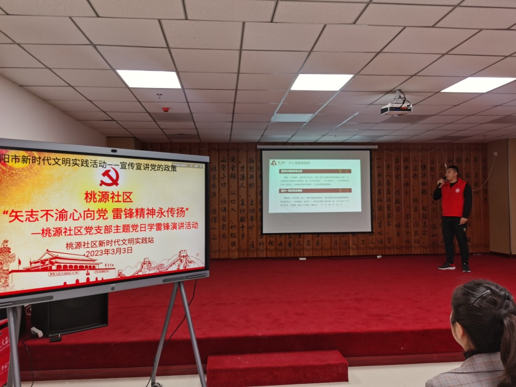 桃仙街道桃源社区党支部开展 “矢志不渝心向党 雷锋精神永传扬 ”主题演讲活动,来自各单位选派的演讲者结合自己工作岗位,用充沛的情感,激昂的文字和鲜活的故事传承雷锋精神,彰显青春力量,展现新时代青年具有的责任担当。