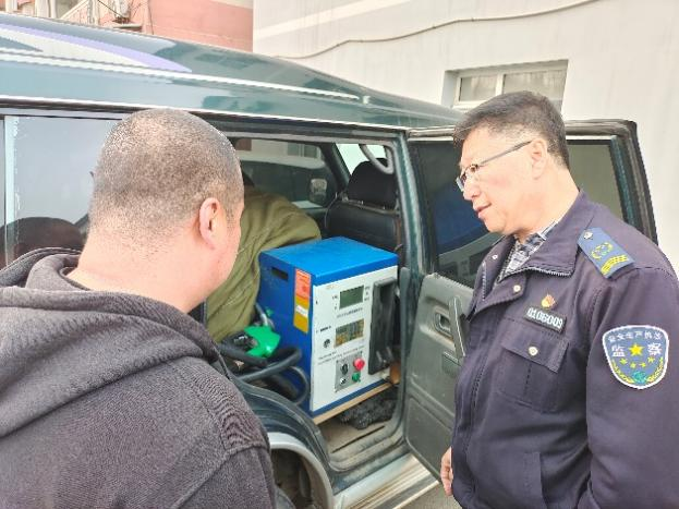 整治行动针对可能存在成品油“黑窝点”“流动加油车”的区域,开展全方位监测和摸排。行动中,联合执法组在高坎街道旧站地区街路巡查过程中,发现一台白色金杯面包车正在违法销售危险化学品(汽油),同时发现另一台绿色猎豹吉普车形迹可疑,执法人员立即对两辆车进行检查。经查,该面包车车厢已被改装,内藏1个储罐、1台加油机,铝制油桶5个;吉普车内藏有储罐1个,加油机1台,涉嫌非法销售危险化学品(汽油)违法行为。区应急局执法人员立即将车主及涉案车辆扣押,对两名车主下达询问通知书等执法文书,并对其依法进行处理。