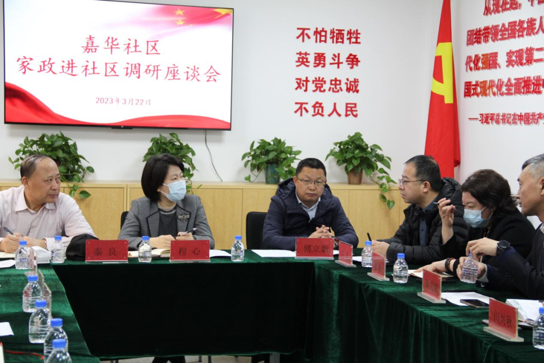 为加强家政服务进社区和社区妇女工作互融互促,3月22日,市妇联在我区五三街道嘉华社区召开家政进社区工作调研座谈会。市妇联主席程心、浑南区委副书记傅立新、区妇联及五三街道主要领导,6名家政企业代表以及部分社区书记代表参加了会议。