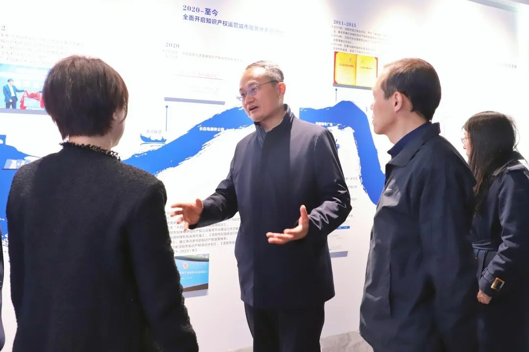 岳宗全一行先后参观了沈阳知识产权展示传播中心和沈阳知识产权运营服务中心,听取了关于沈阳市知识产权服务体系和集聚区建设的情况介绍,详细了解集聚区在知识产权创造、运用、保护等方面的综合功能属性,并围绕知识产权高质量创造、高效益运用、高水平保护、高质量服务展开深入交流。