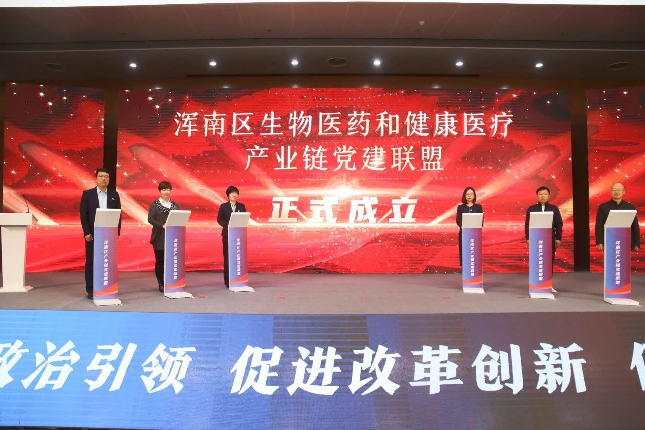 会上,浑南区生物医药和健康医疗产业链党建联盟也正式成立。生物医药与健康医疗产业作为浑南区重点发展的产业之一,在科技部发布的《中国生物医药产业园区竞争力评价报告》中排名第24名,随着产业规模日渐壮大,主导产业影响力突显,涌现出了一批行业龙头企业,他们市场占有率高、产品出口量大、科技创新能力强,党建引领企业发展成效显著。浑南区围绕重点产业,夯基固链、延链拓链、招强补链这一工作目标,持续推动产业链、创新链、金融链多链融合,探索以生物医药和健康医疗产业为试点,通过阵地联建、人才联育、发展联谋、活动联办等方式,为产业链注入红色动能,用产业链党建联盟的“组织力”赋能企业发展“生产力”。