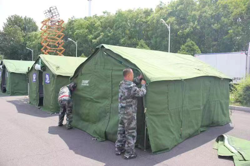 上午10时,演练活动开始,参演人员按照各自分工,依次进行了队伍集结、应急物资紧急调运、防洪挡板迅速搭建、临时避难场所搭建四个科目的演练。