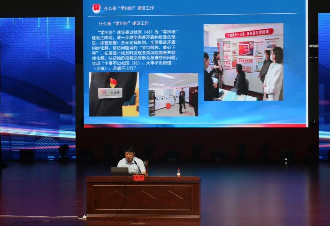 此外,还邀请沈阳市司法局人民参与和促进法治处相关负责人作“零纠纷”建设工作专题讲座,针对全面落实沈阳市关于开展“零纠纷”建设工作的安排,结合沈阳市委政法委开展“有事好商量”矛盾纠纷化解专项行动,进行了系统梳理、多维阐释,为参训学员进行了详细的解读。