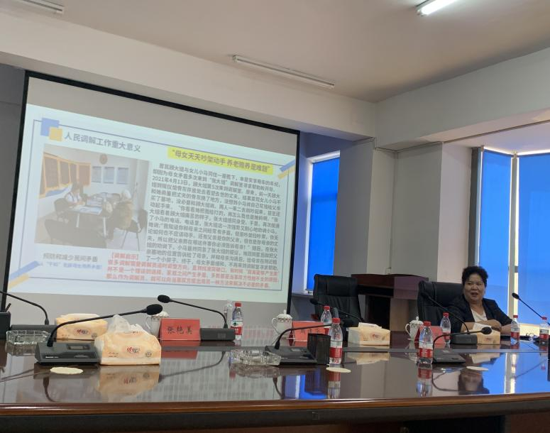 本次培训还特邀省级人民调解专家、金牌调解员张艳美同志,结合自己30多年从事调解工作的宝贵经验,从理论运用到实际调解工作的开展进行了生动地阐述,拓宽了人民调解工作的思路,加深了参训人员对调解工作方法和技巧的认识。