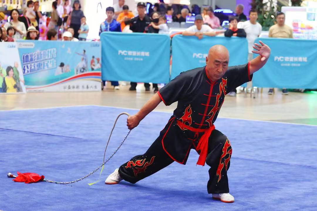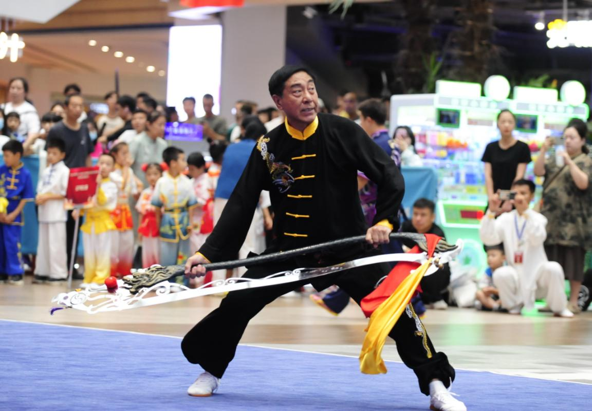 开幕式上,螳螂拳、通背拳、形意刀、翻子拳、行者棍......精美绝伦的武术展演轮番上演。有武术少年们带来校园武术表演《功夫小子》,更有名家精彩献技弘扬国粹,让商场内许多驻足观看的市民大呼过瘾。