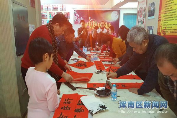 社区党支部联合共建单位沈阳电大,邀请了10位中国当代艺术家协会的书法家们为居民们现场写春联、送福字。书法家们挥毫泼墨,新春的祝福在笔尖流淌,美好的祝愿在居民中传递。书法家李振华老师现场为社区创作了一幅春联,上联是:格林英郡幸福地,下联是:和睦安康喜气多,横批:美丽社区,将此次活动推向了高潮,到处洋溢着欢乐的节日气氛。