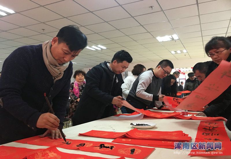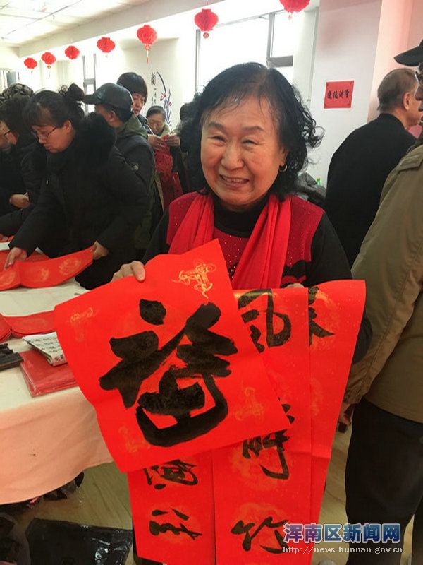 墨香阵阵迎新春,锣鼓声声话新年。1月19日一大早,浑南区的百荷社区就热闹非凡,社区的居民纷纷排着队领取浑南区书法家协会的书法家现场书写的春联以及浑南区文体局为社区准备的文化体育用品以及图书等文化年货。刚领到写着“华夏共圆中国梦,神州开启幸福门”春联的齐大娘高兴的合不拢嘴:“书法家的春联写得好,寓意更好,我们广大群众太欢迎这样的活动了!”