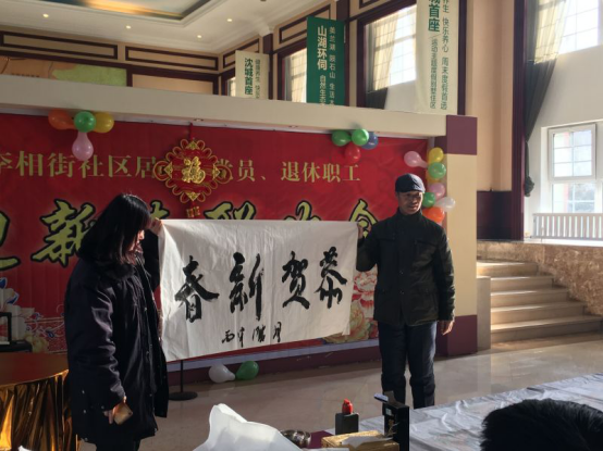 1月20日上午,联欢会在欢快的广场舞中拉开了序幕,联欢会囊括了歌曲演唱、乐器演奏、广场舞、拉丁舞、三句半、独唱等多种形式的表演,精彩的演出让人目不暇接。李相街社区艺术团歌舞队表演的开场舞蹈《开门红》,音乐旋律热情欢快,她们努力将“快乐健身、文明健身”的思想传播给更多的人,中老年朋友们炫丽的服装,优美的舞姿,完美诠释了最美夕阳红。艺术团表演的合奏《我们走在大路上》、还有女声独唱《好日子》,退休职工的尽兴书法等作品也得到了观众们的一致称赞。