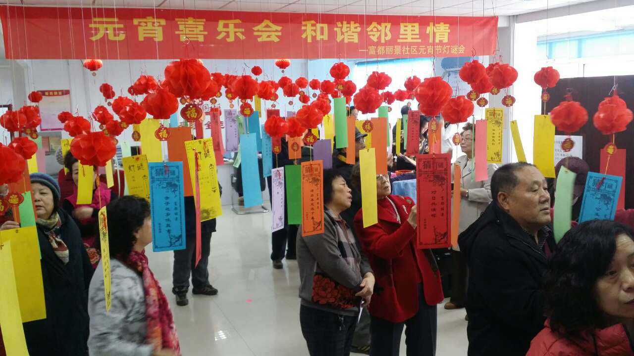 为营造良好的节日喜庆气氛,丰富社区居民的文化生活,进一步打造“孝邻”文化特色社区,2月10日上午九点,富都丽景社区开展了以“元宵喜乐会,和谐邻里情”为主题的元宵节灯谜会。近60位社区居民热情参与,活动现场热闹非凡。