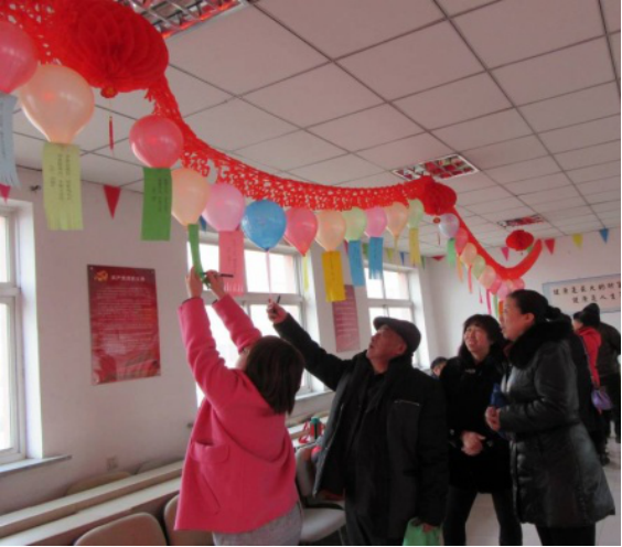 伴随着《正月十五闹花灯》、《中国吉祥》、《卖汤圆》等喜庆、欢快的背景音乐,上午九点半左右,社区元宵节猜灯谜文化活动正式开始。活动伊始,配合现场LED大屏幕显示的活动规则说明,现场主持人详细解释了此次猜灯谜活动的具体方法与流程,并预祝大家节日快乐。本次猜灯谜活动,社区共收集包含地名、日常生活、保健知识、文化知识等方面的灯谜70多条,精心裁制,悬挂于五颜六色的气球之下,供社区居民猜看,谜面生动有趣,难易不同,寓教于乐。活动中,居民们饶有兴致地认真分析、揣度谜面,不时地跟周围居民互相探讨,直到最终有了正确答案。活动期间,根据猜得灯谜的难易程度,社区还为居民朋友们准备了实用的节日小奖品,增加节日里的欢乐气氛。