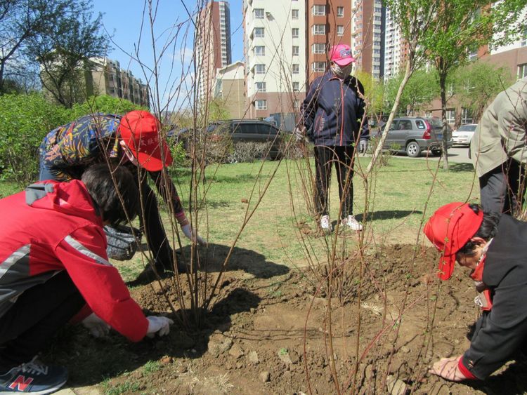 4月25日上午政协委员南国军、黄丽颖、许云、杜志文和自带铁锹、水桶等工具的居民们共同参与植树,扛苗散苗、挥锄铲土、摆正树苗、扶苗踏实、覆土定植,大家精心对待植树的每一个环节。经过一上午的紧张劳作,共在文欣苑小区种植了樱花、海棠等近百株绿色苗木。“美好的生活环境需要绿色来装扮,我们在庭院里种些树木,不仅能美化环境,居民们看见了心情也会非常好!”高大爷看着微风中摇曳的树枝愉悦地说道。