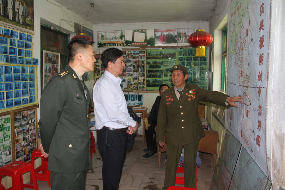5月11日上午,区委常委、区人民武装部政委纪德宇来到沈阳浑南区高坎镇旧站村,对抗美援朝老兵孙德山进行走访慰问。并倾听了老人讲述抗美援朝时期的事迹和展览馆的建设过程。区民政局局长许海清参加慰问活动。