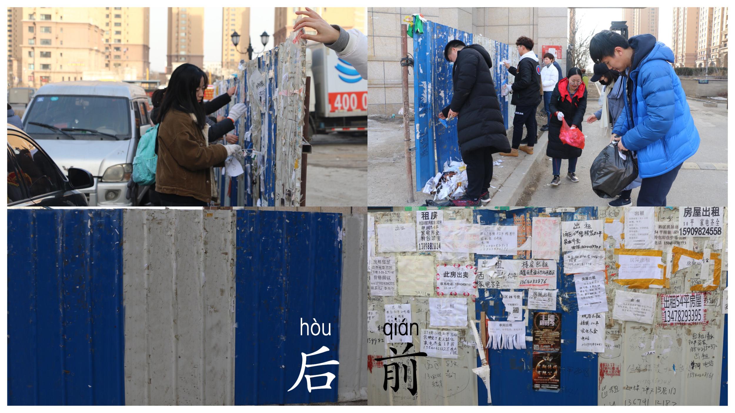 在启动仪式之后,社区的党员、团员与青年志愿者们用自备的手套、云石刀、钢丝球、喷水壶等劳动工具,对小招贴、垃圾进行了集中清除。通过大家的努力,使社区环境面貌得到很大改观。