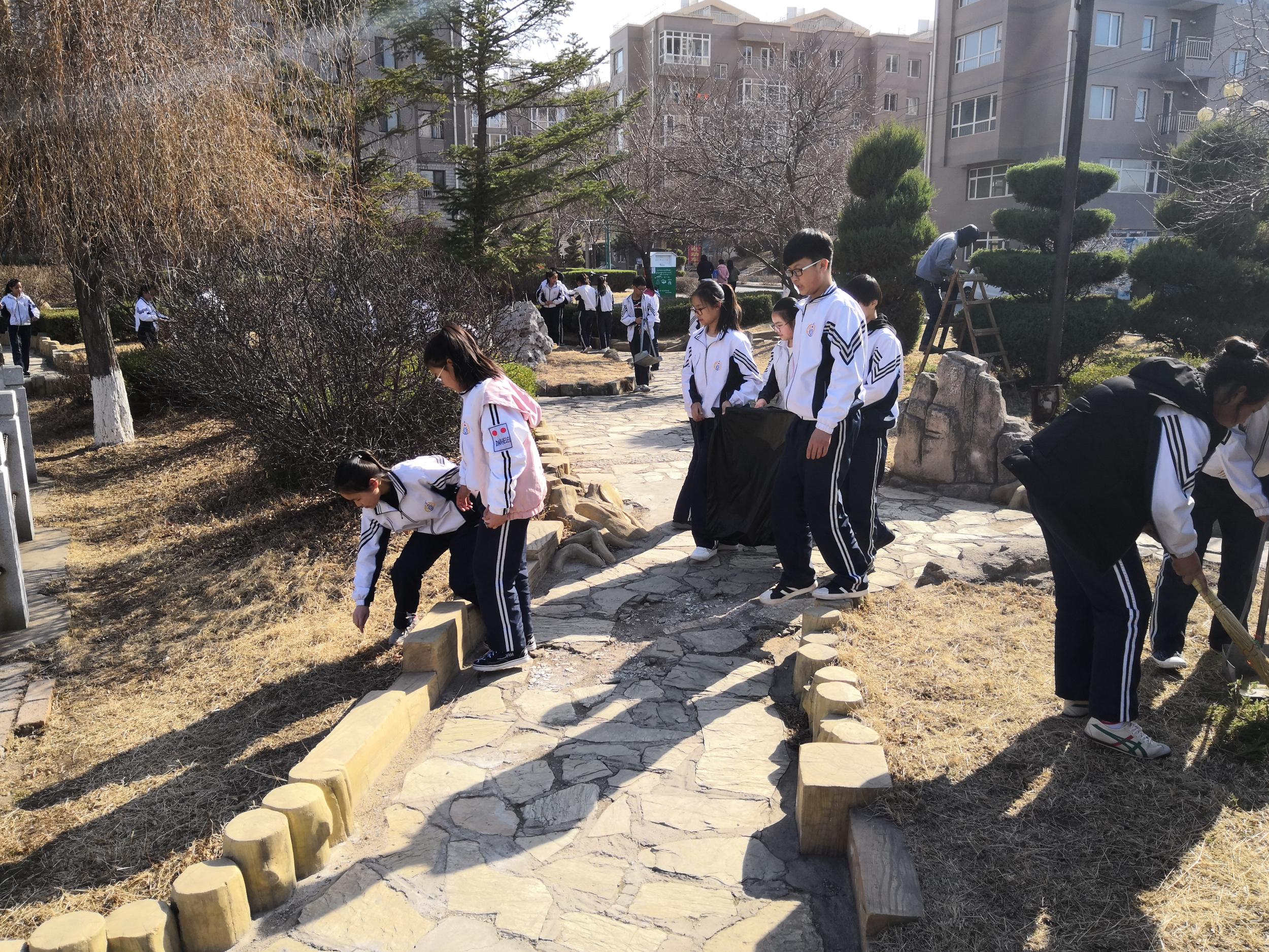 同学们分成几个小组,以人工湖为圆心,对园区的垃圾进行清理。有的扫地,有的捡拾果皮、纸屑、烟头,有的擦拭宣传栏等公共设施,整个社区呈现一片热火朝天的劳动景象。通过两个小时的清扫,园区面貌焕然一新。同学们为提升园区环境质量,营造舒适、整洁的生活环境贡献了自己的力量,得到了社区居民的一致好评。