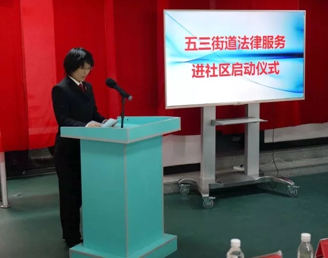 5月3日,五三街道党工委举行法律服务进社区启动仪式,我院党组成员、政治处主任李丽君及进驻社区的法官代表应邀参加了启动仪式。